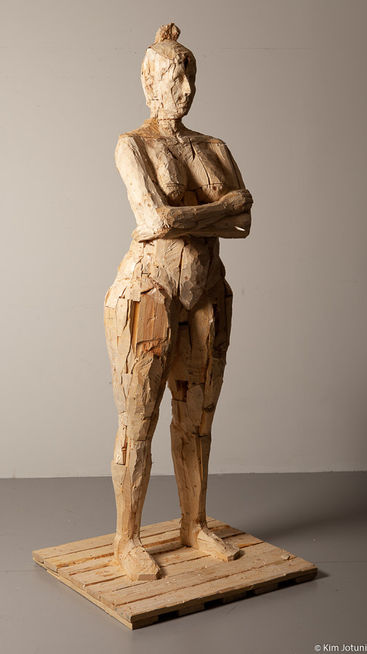 A woman made of wood. I made this piece when I was still in the Academy. I did want to make a wooden figure using a life model as a reference. The process was interesting for me because it was a combination of building the form from timber and then shaping it by an ax and wood chisels.